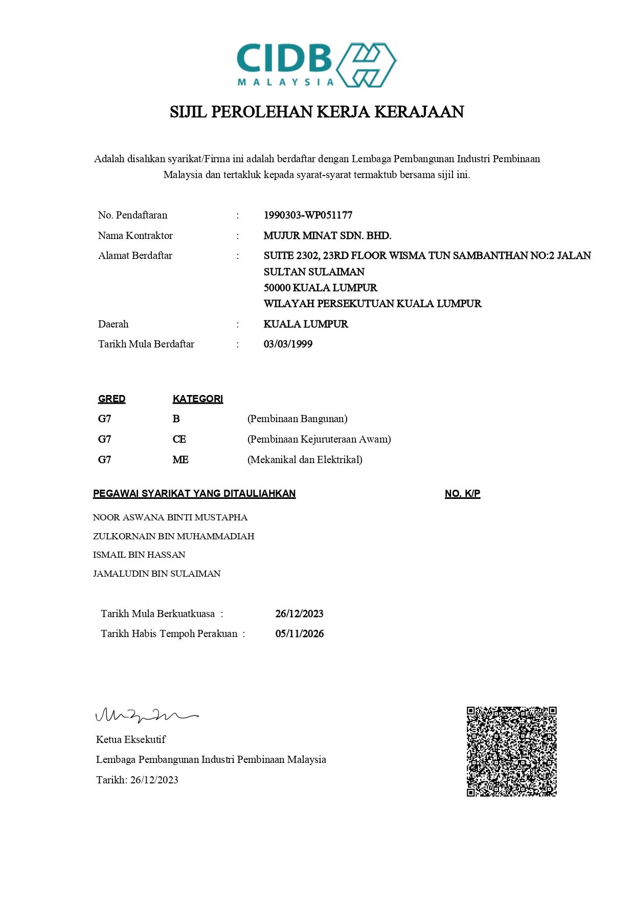 Sijil Khidmat Kontraktor