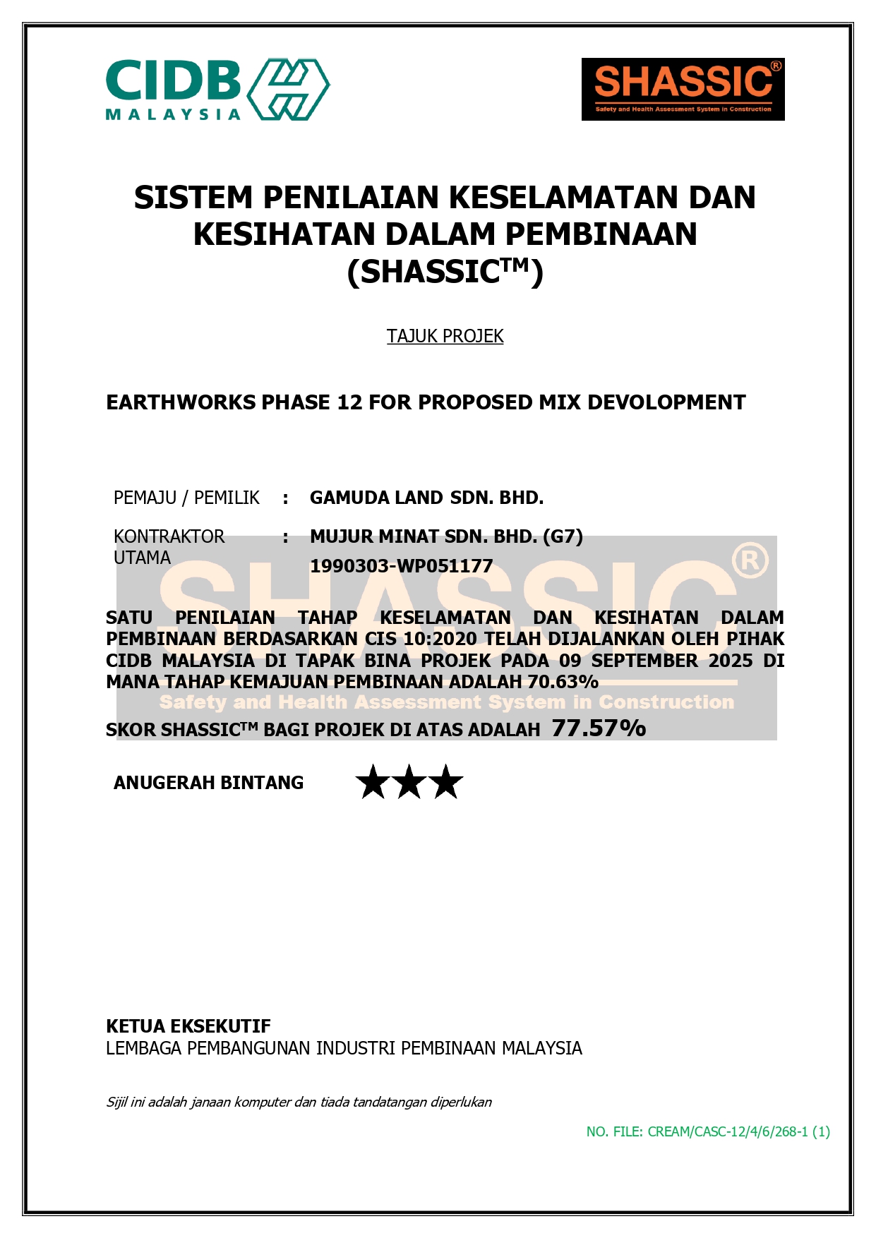 Sijil CIDB Score
